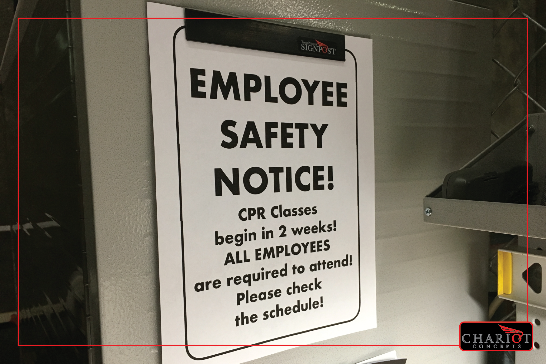 What about government mandated safety notices or training schedules? Pick a permanent spot so your employees always know where to look, then simply change out the notices as they are updated. Works also for customer notices when you want to inform about holiday schedules or store policies.